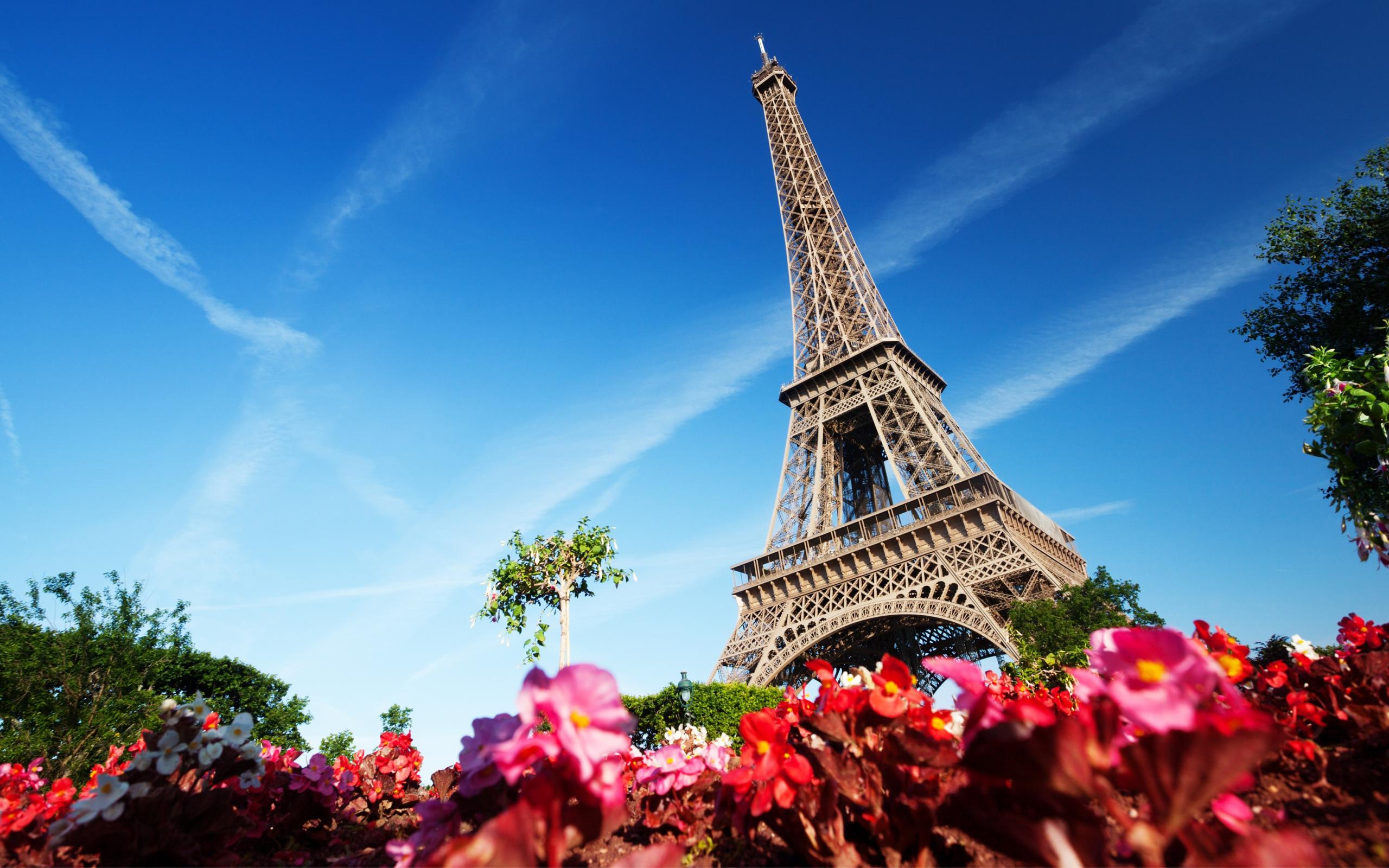 Wallpaper Eiffel tower on background of blue sky in Paris, France