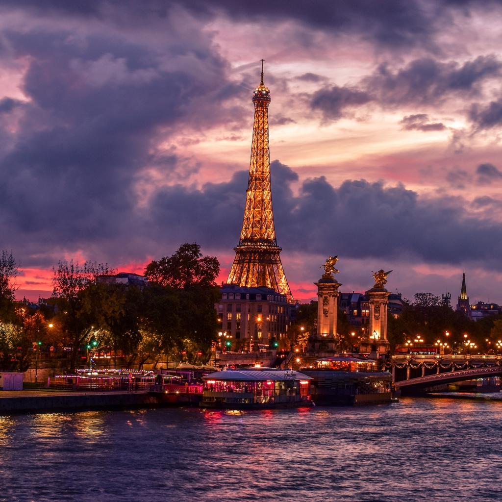 Wallpaper View of the Eiffel Tower at night under the beautiful sky, France
