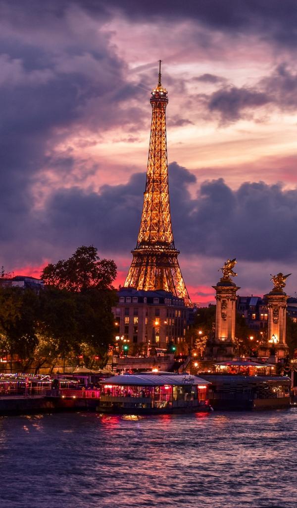 Wallpaper View of the Eiffel Tower at night under the beautiful sky, France