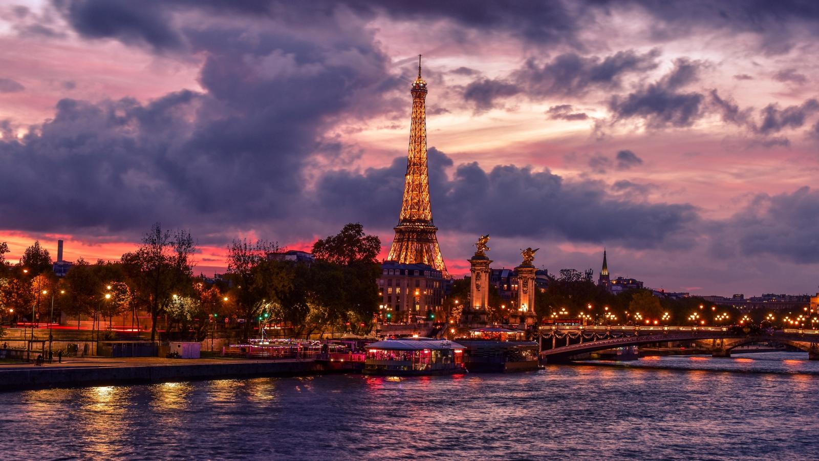 Wallpaper View of the Eiffel Tower at night under the beautiful sky, France