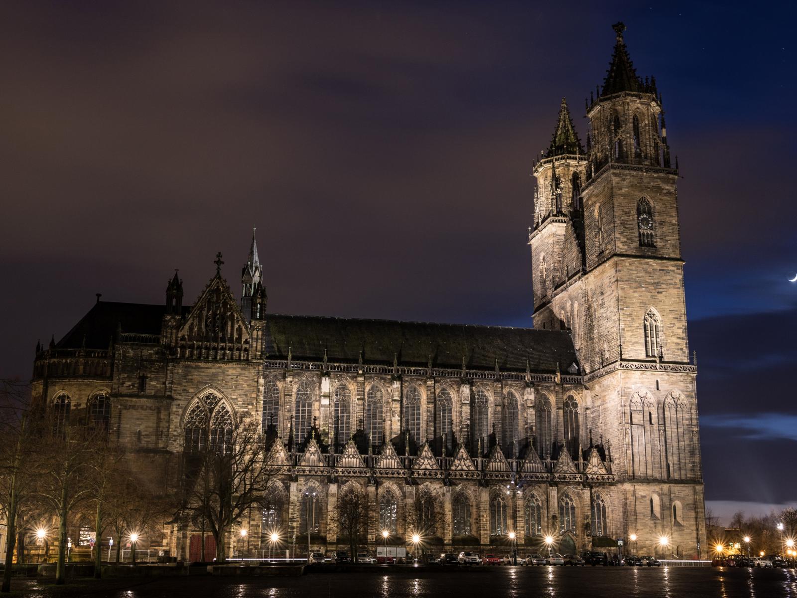 Wallpaper Old Magdeburg Cathedral at night, Germany