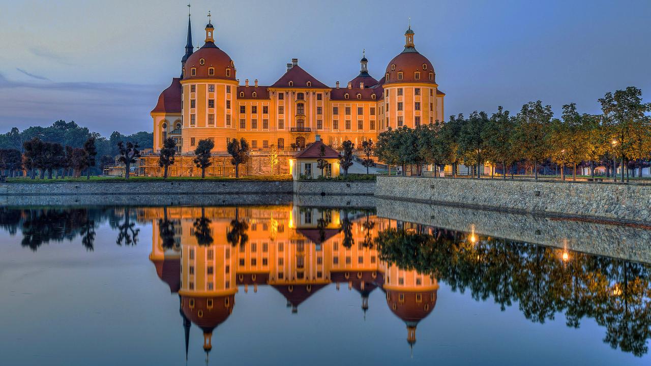 Wallpaper Moritzburg Castle is reflected in the water. Germany