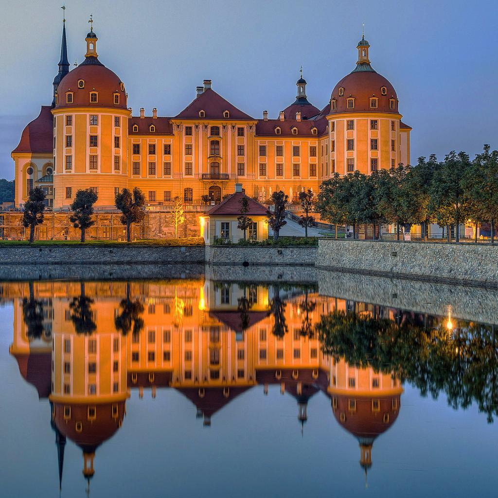 Wallpaper Moritzburg Castle is reflected in the water. Germany