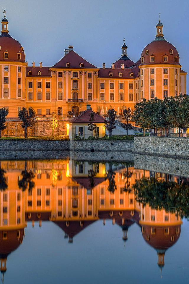 Wallpaper Moritzburg Castle is reflected in the water. Germany
