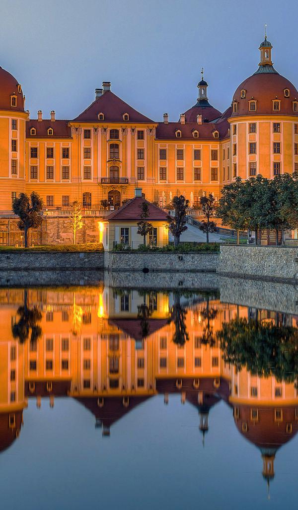Wallpaper Moritzburg Castle is reflected in the water. Germany