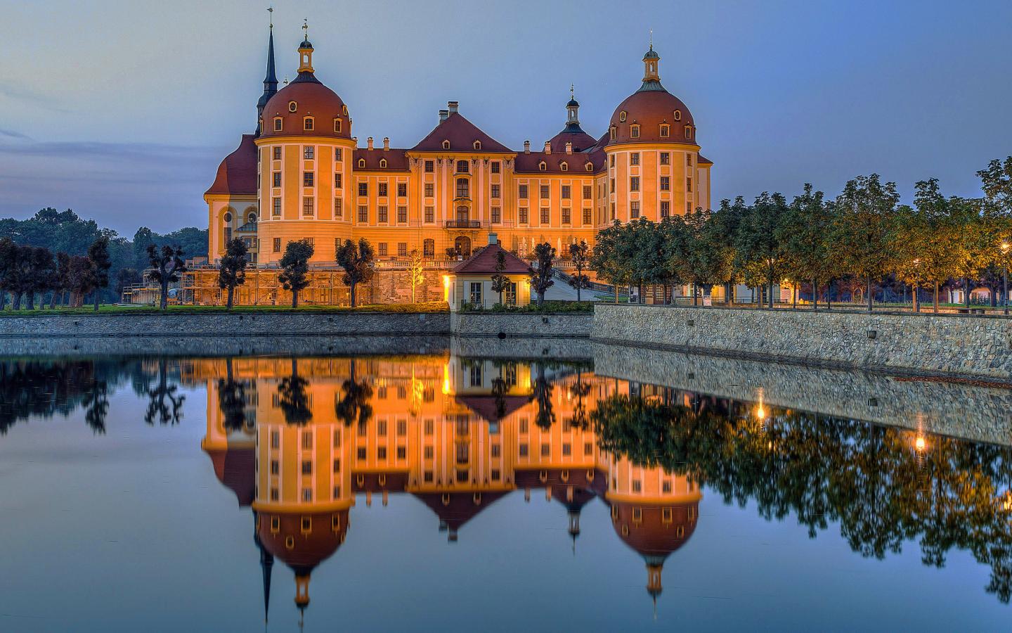 Wallpaper Moritzburg Castle is reflected in the water. Germany