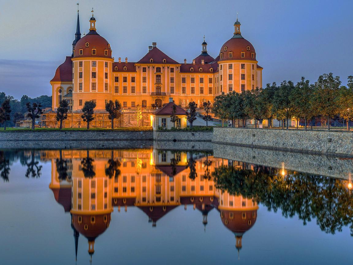 Wallpaper Moritzburg Castle is reflected in the water. Germany