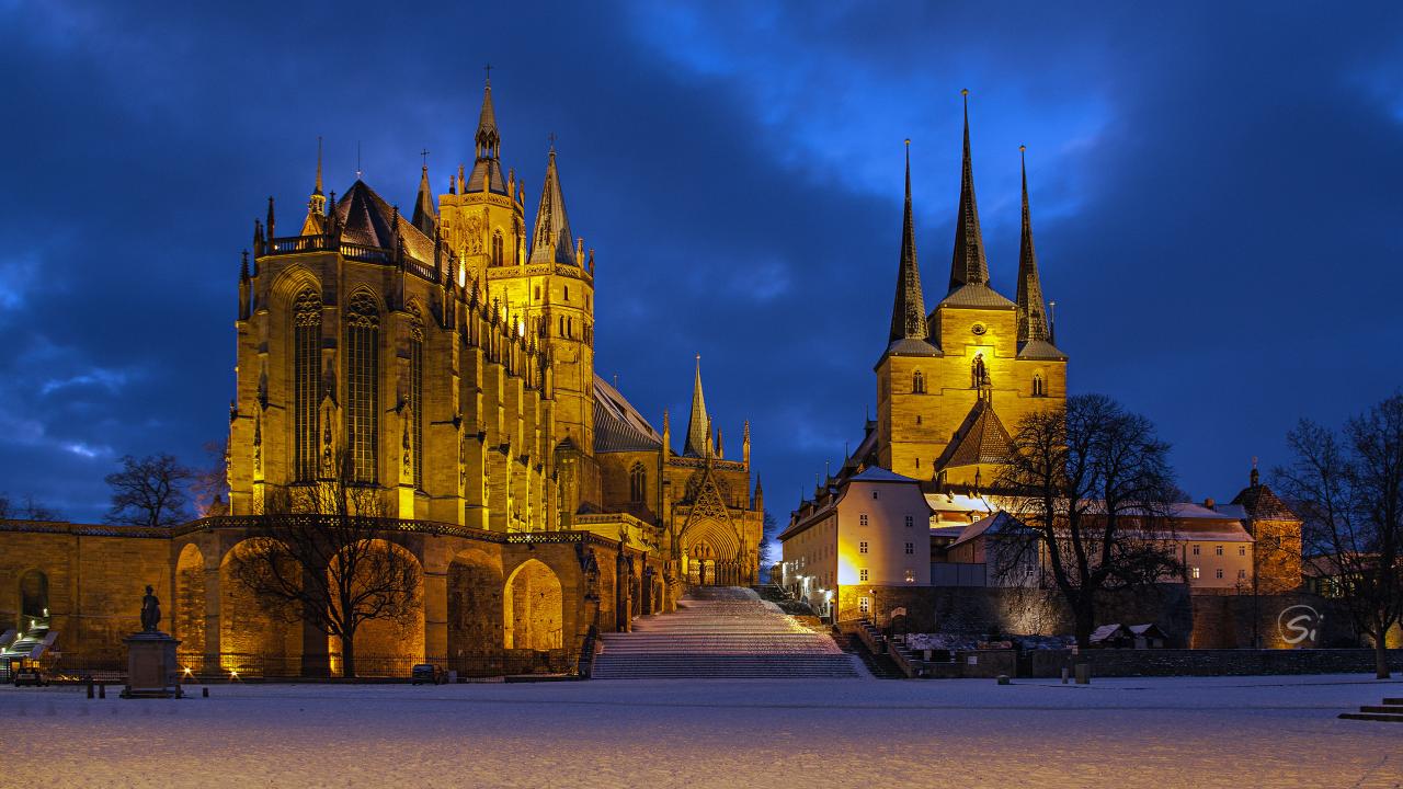 Wallpaper Erfurt Cathedral in the light of evening lights, Germany