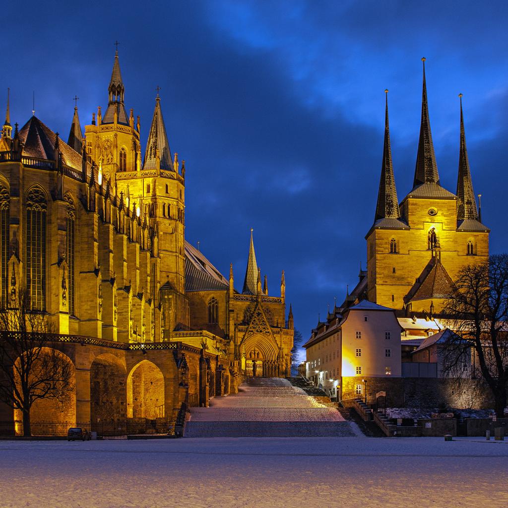 Wallpaper Erfurt Cathedral in the light of evening lights, Germany