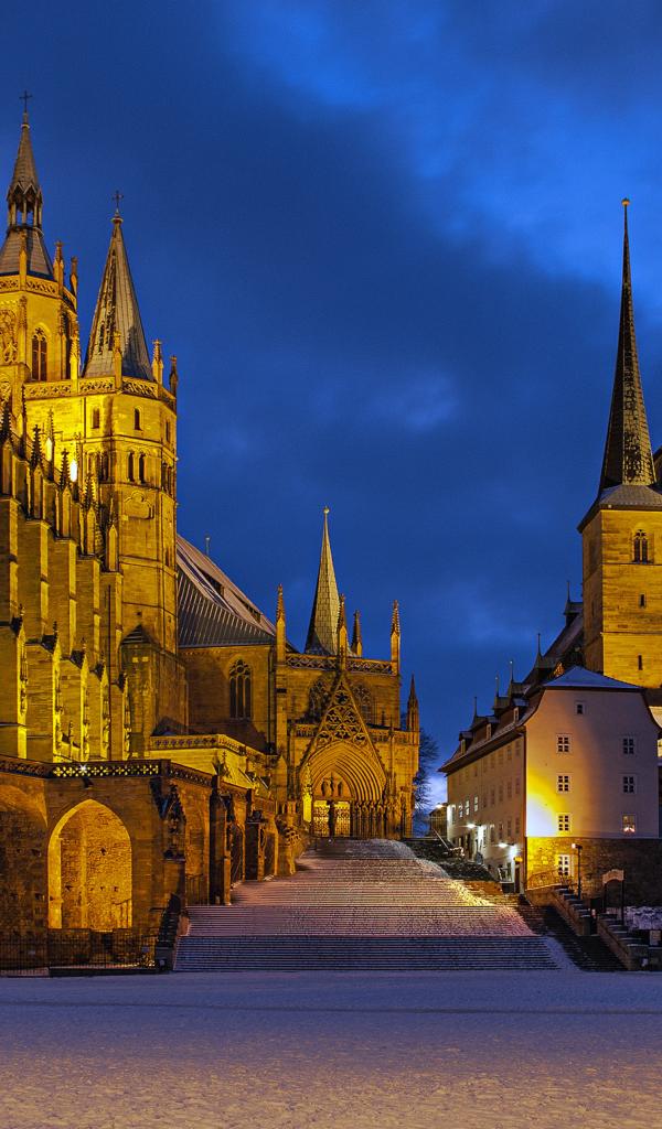 Wallpaper Erfurt Cathedral in the light of evening lights, Germany