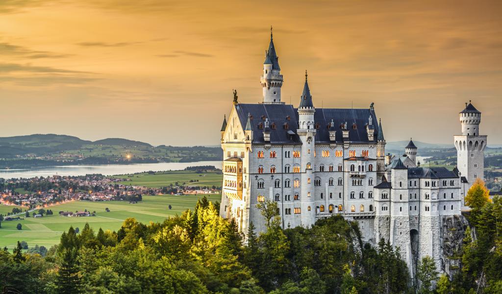 Wallpaper Красивый замок Нойшванштайн на рассвете, Германия