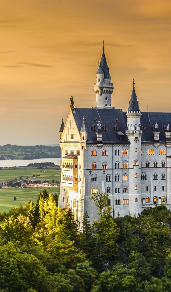 Wallpaper Красивый замок Нойшванштайн на рассвете, Германия