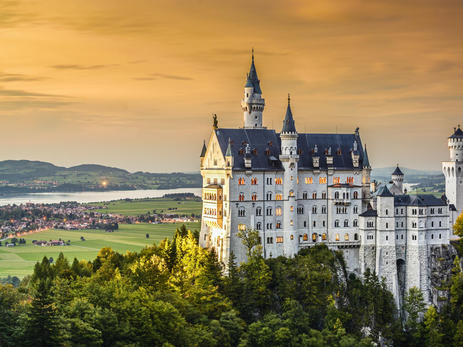 Wallpaper Красивый замок Нойшванштайн на рассвете, Германия