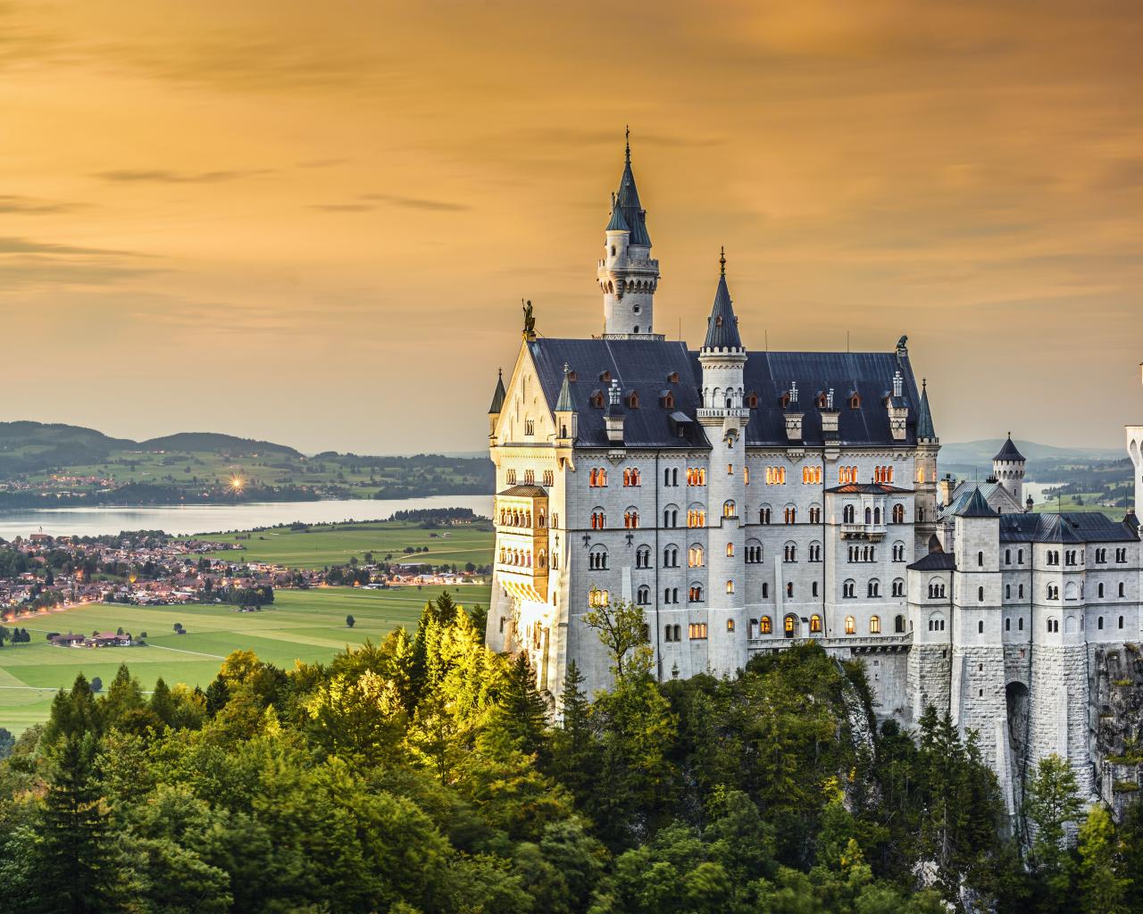 Wallpaper Красивый замок Нойшванштайн на рассвете, Германия