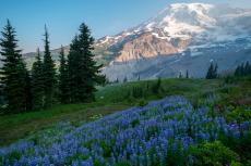 Wallpaper Neuschwanstein Castle in a forest thicket against a backdrop of mountains, Germany