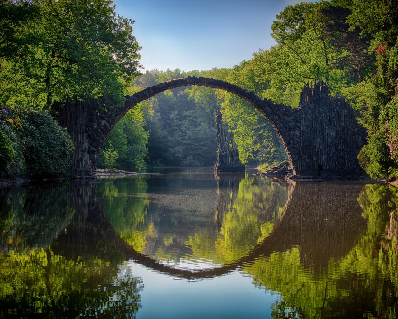Wallpaper Devil`s bridge Rakotzbrücke over the river, Germany