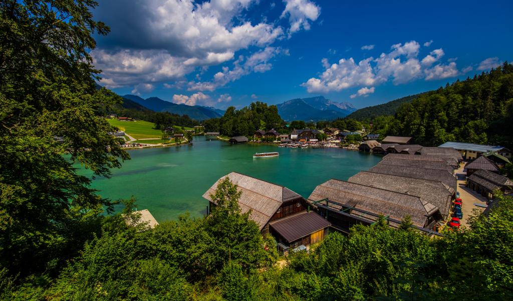 Wallpaper Houses on the lake under blue sky, Germany
