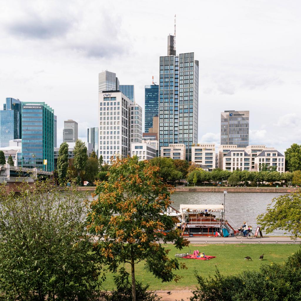 Wallpaper Beautiful view of skyscrapers by the river, Germany