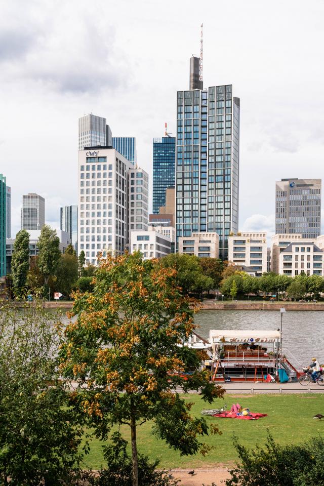 Wallpaper Beautiful view of skyscrapers by the river, Germany
