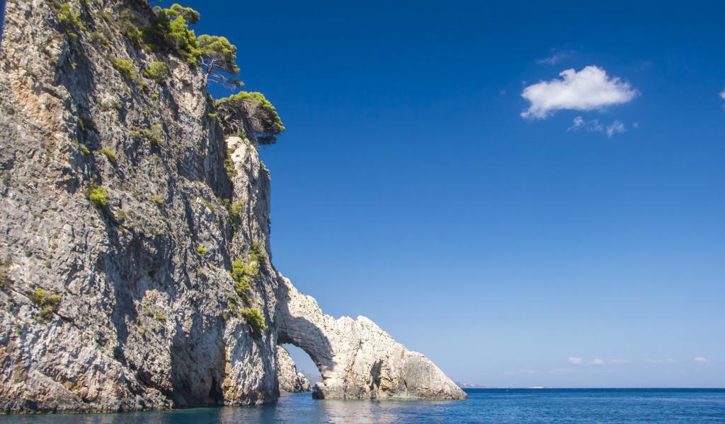 Wallpaper Stone cliff with an arch into the sea, Zakynthos island. Greece