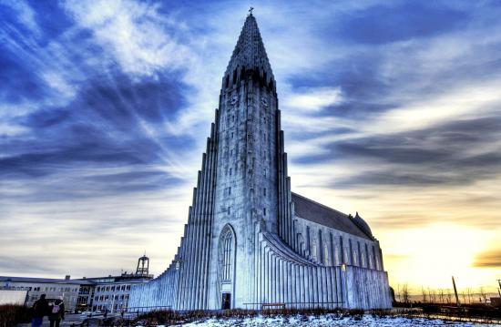 Wallpaper Hallgrimskirkja Church under the blue sky, Reykjavik. Iceland
