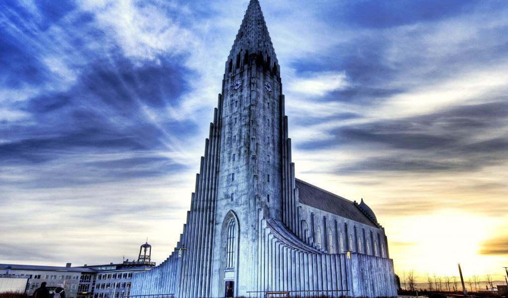 Wallpaper Hallgrimskirkja Church under the blue sky, Reykjavik. Iceland