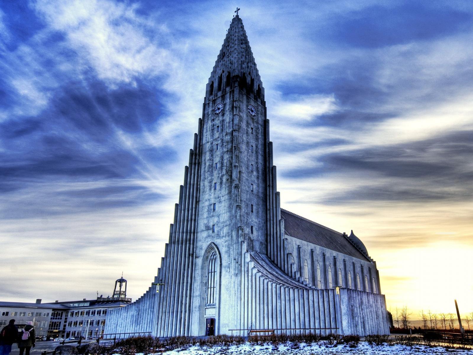 Wallpaper Hallgrimskirkja Church under the blue sky, Reykjavik. Iceland