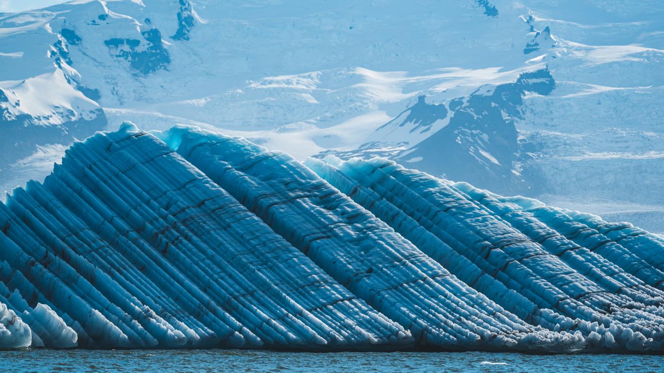 Wallpaper Iceland`s great blue glacier and snow-capped mountains