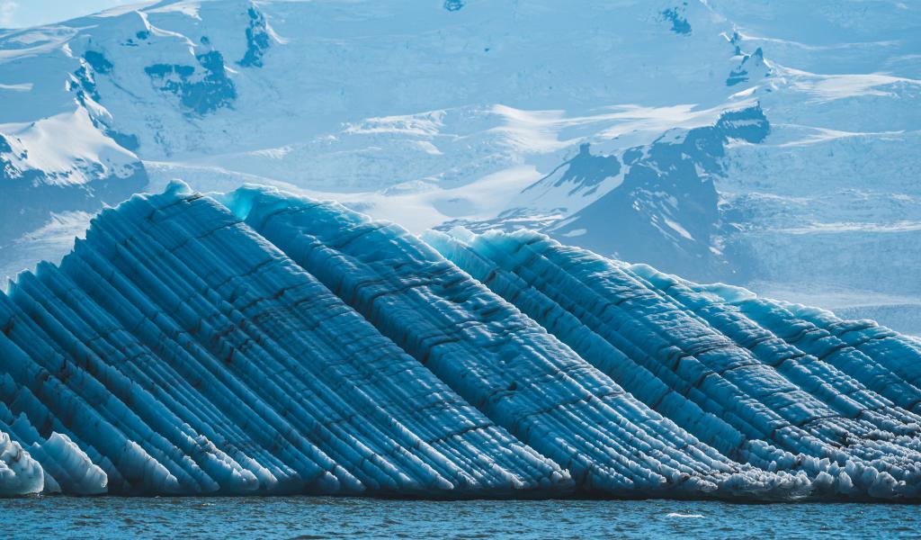 Wallpaper Iceland`s great blue glacier and snow-capped mountains
