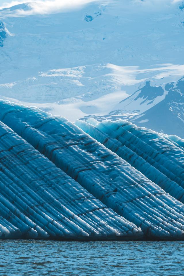 Wallpaper Iceland`s great blue glacier and snow-capped mountains