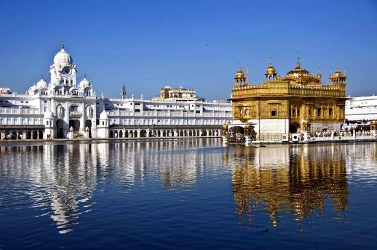 Wallpaper View of the Golden Temple Harmandir Sahib near the water, India