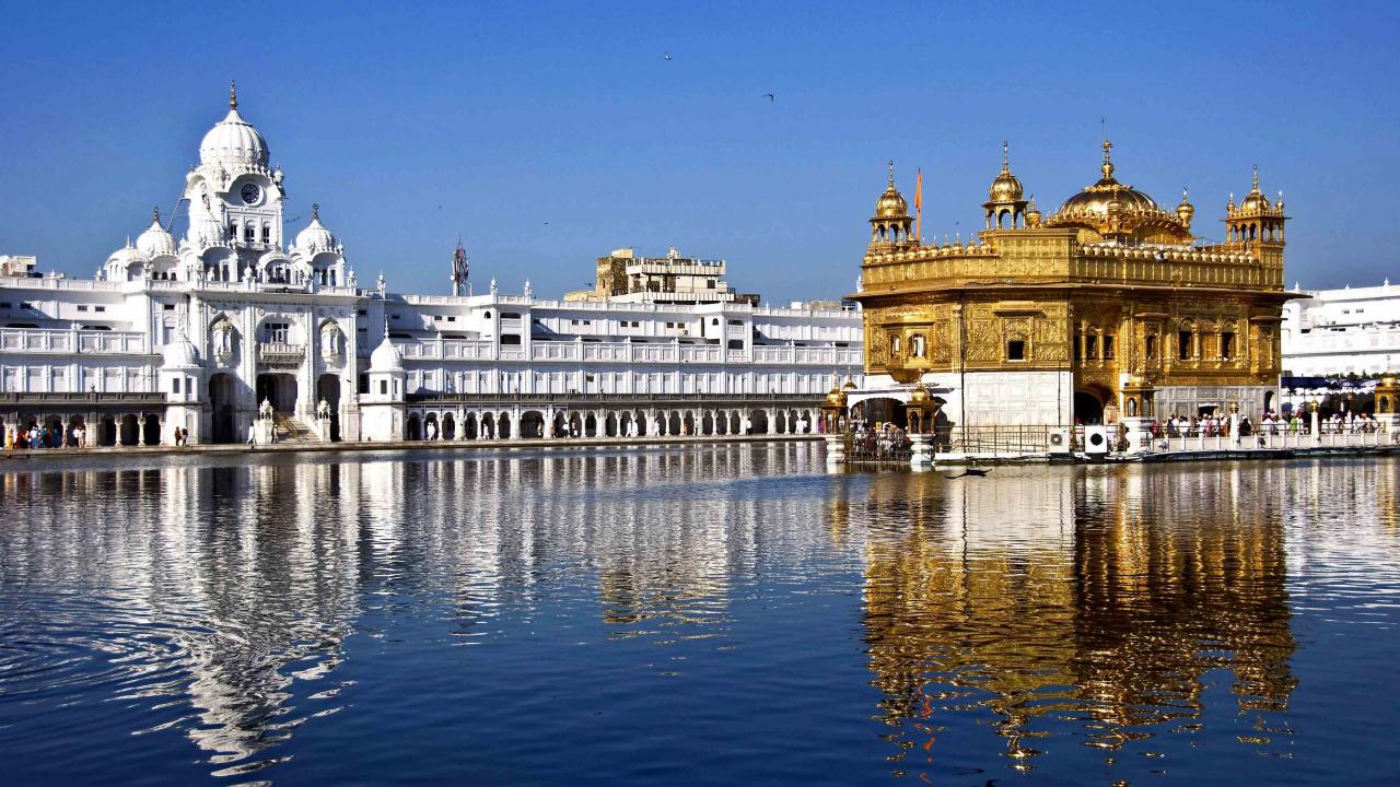 Wallpaper View of the Golden Temple Harmandir Sahib near the water, India