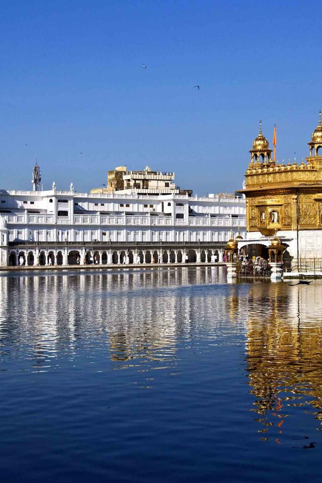 Wallpaper View of the Golden Temple Harmandir Sahib near the water, India