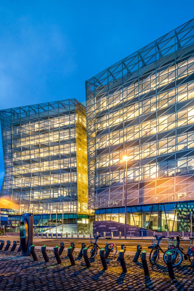 Wallpaper Beautiful glass building in the evening, Dublin. Ireland