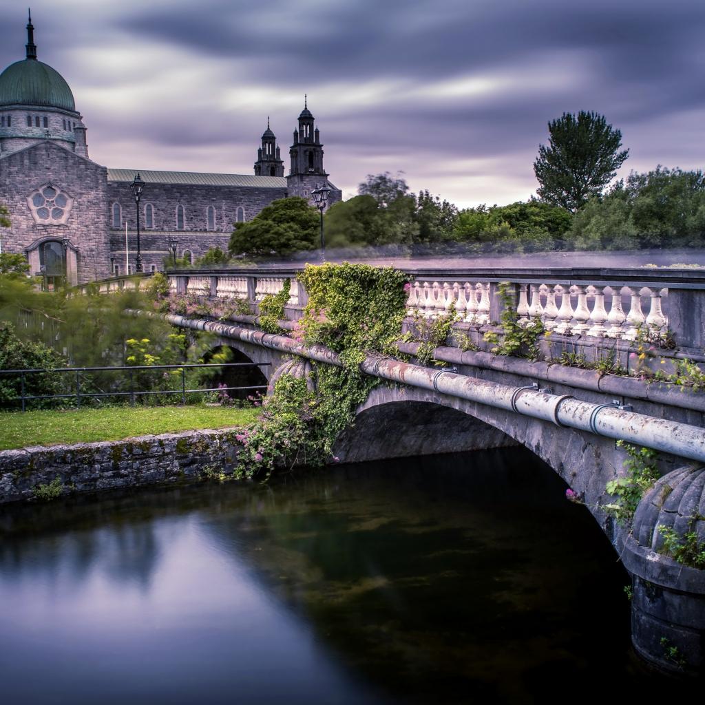 Wallpaper Old River Bridge Leads to Cathedral, Ireland