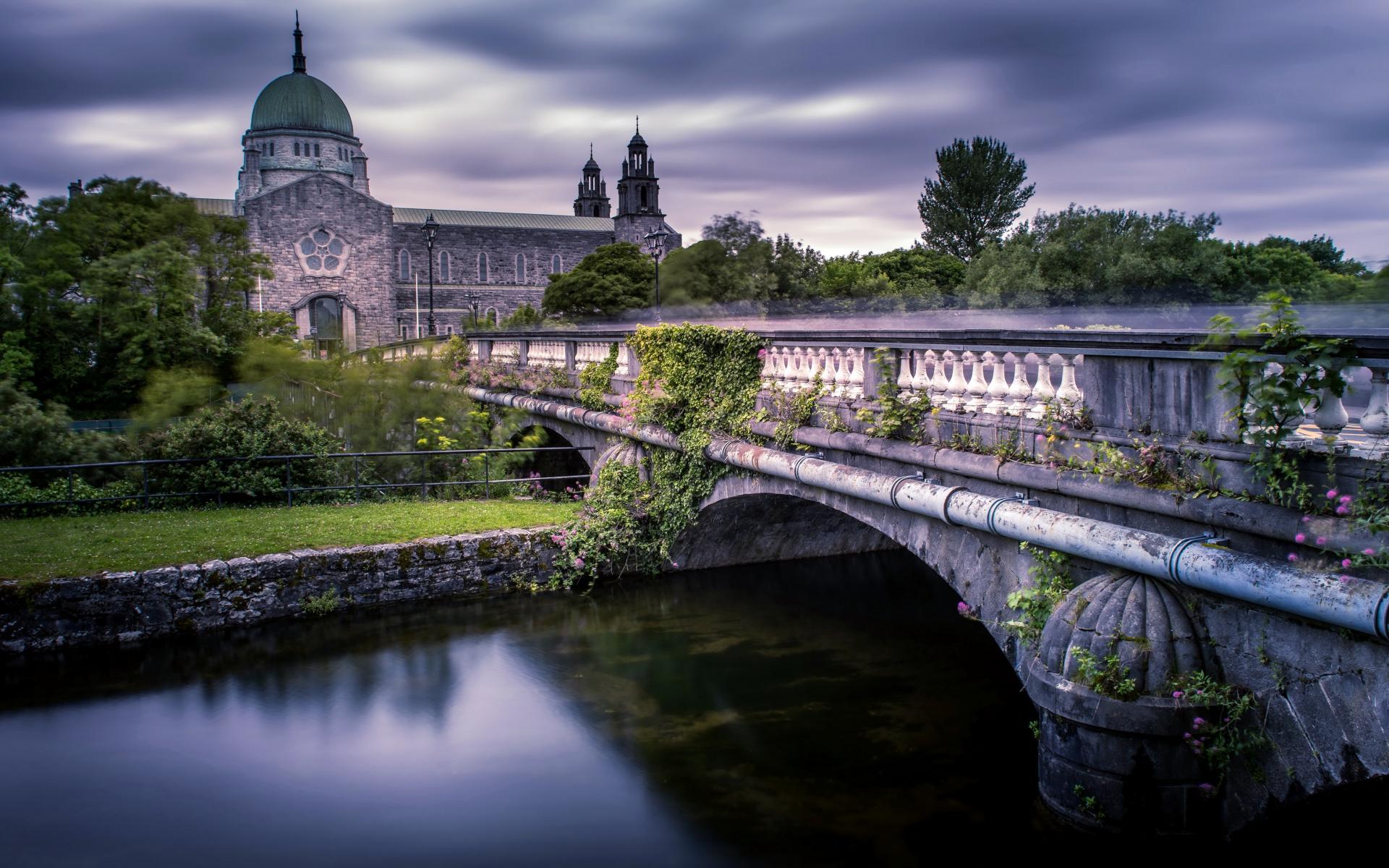 Wallpaper Old River Bridge Leads to Cathedral, Ireland