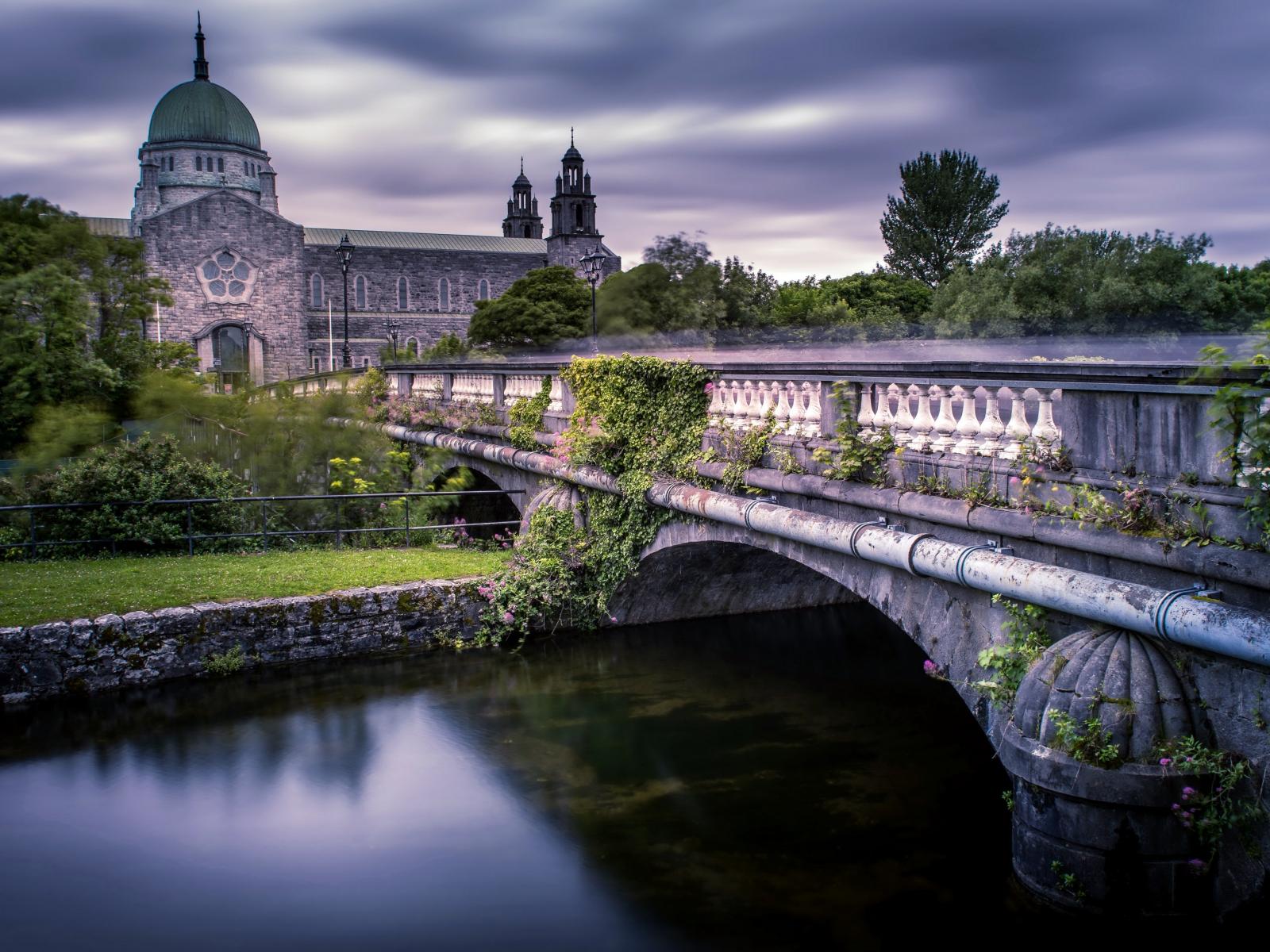 Wallpaper Old River Bridge Leads to Cathedral, Ireland