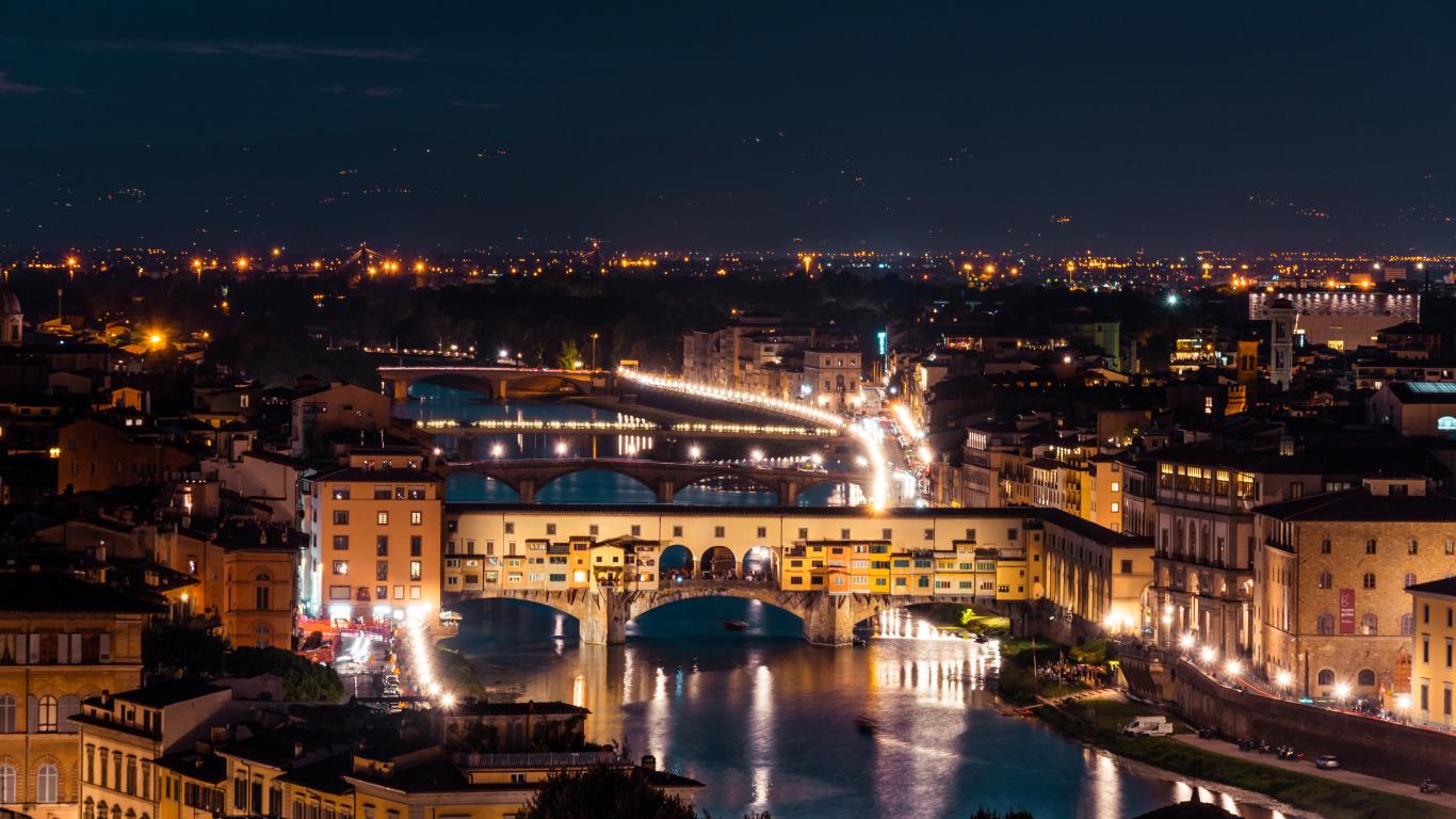 Wallpaper Beautiful night river by the city, Florence. Italy