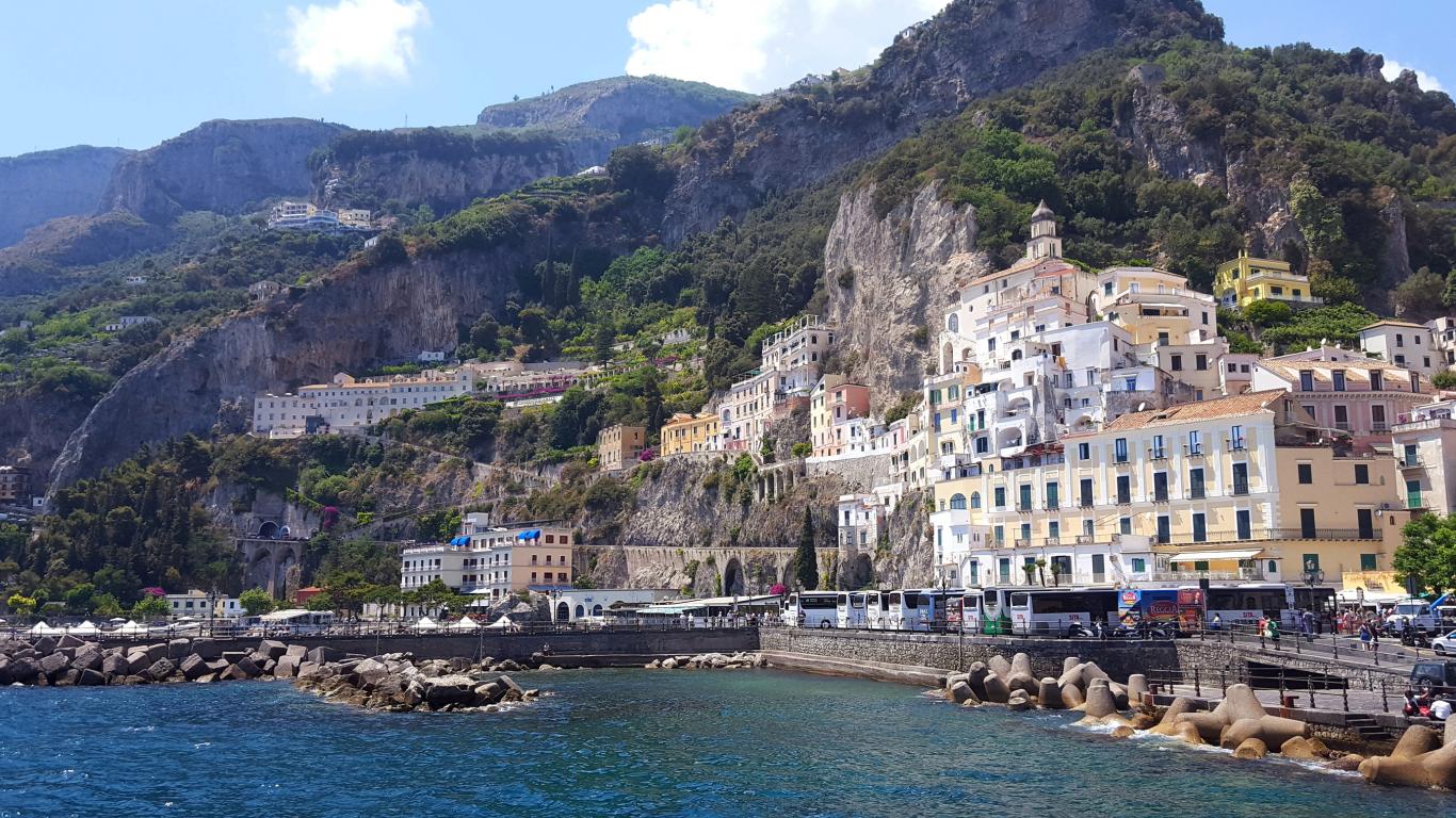 Wallpaper Houses on the cliff at the resort in Amalfi, Italy
