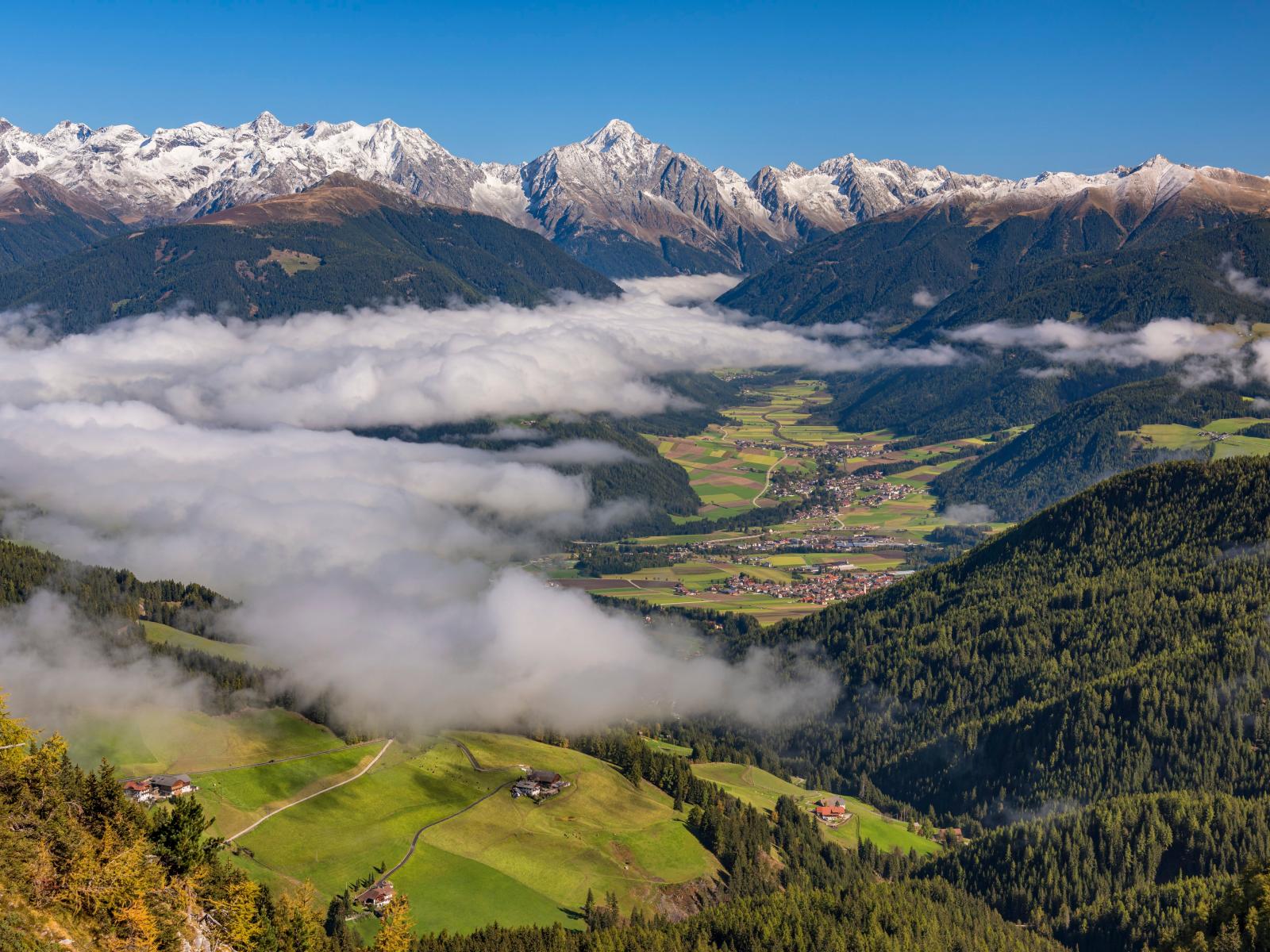 Wallpaper View of the mountain range in the fog, Italy