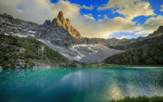 Wallpaper Mountain range Dolomites by the lake, Italy