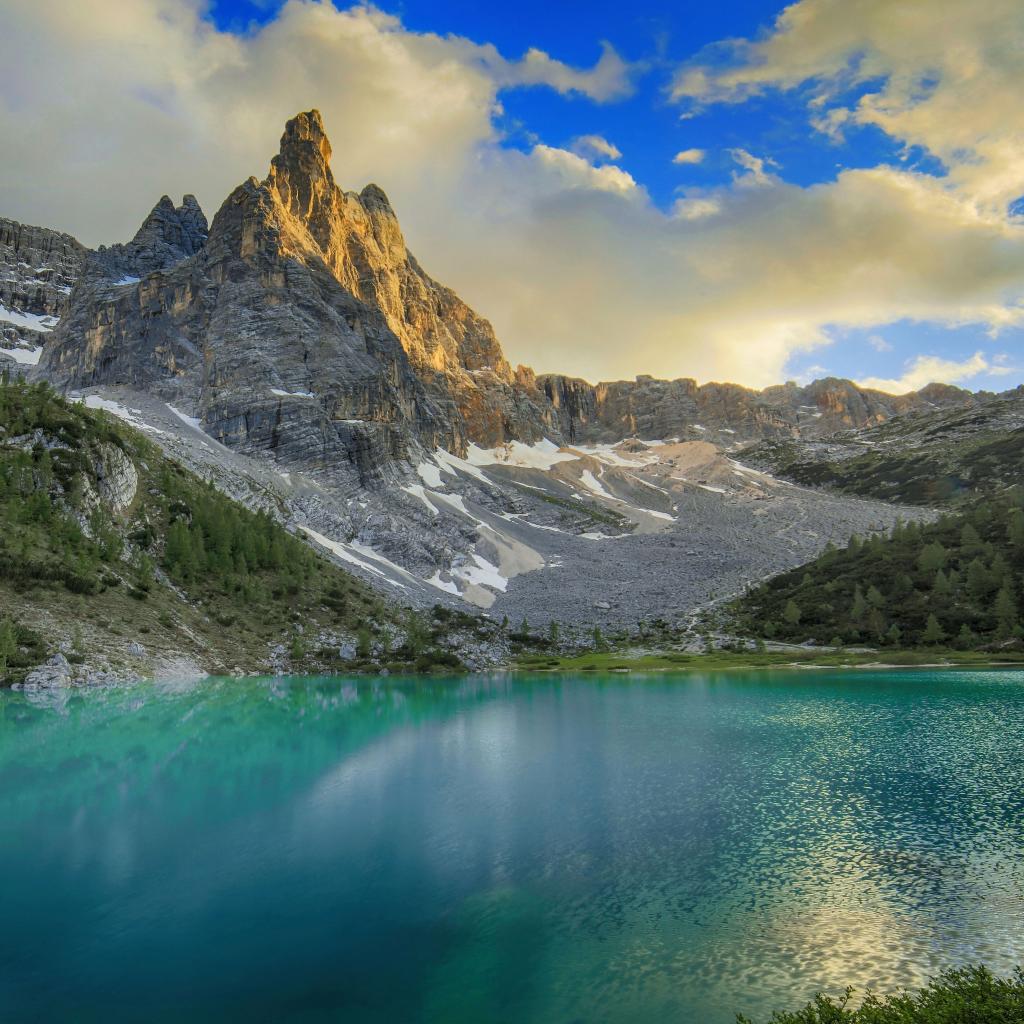 Wallpaper Mountain range Dolomites by the lake, Italy