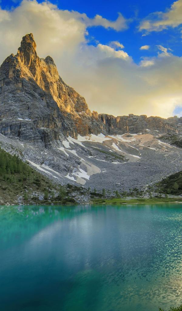 Wallpaper Mountain range Dolomites by the lake, Italy