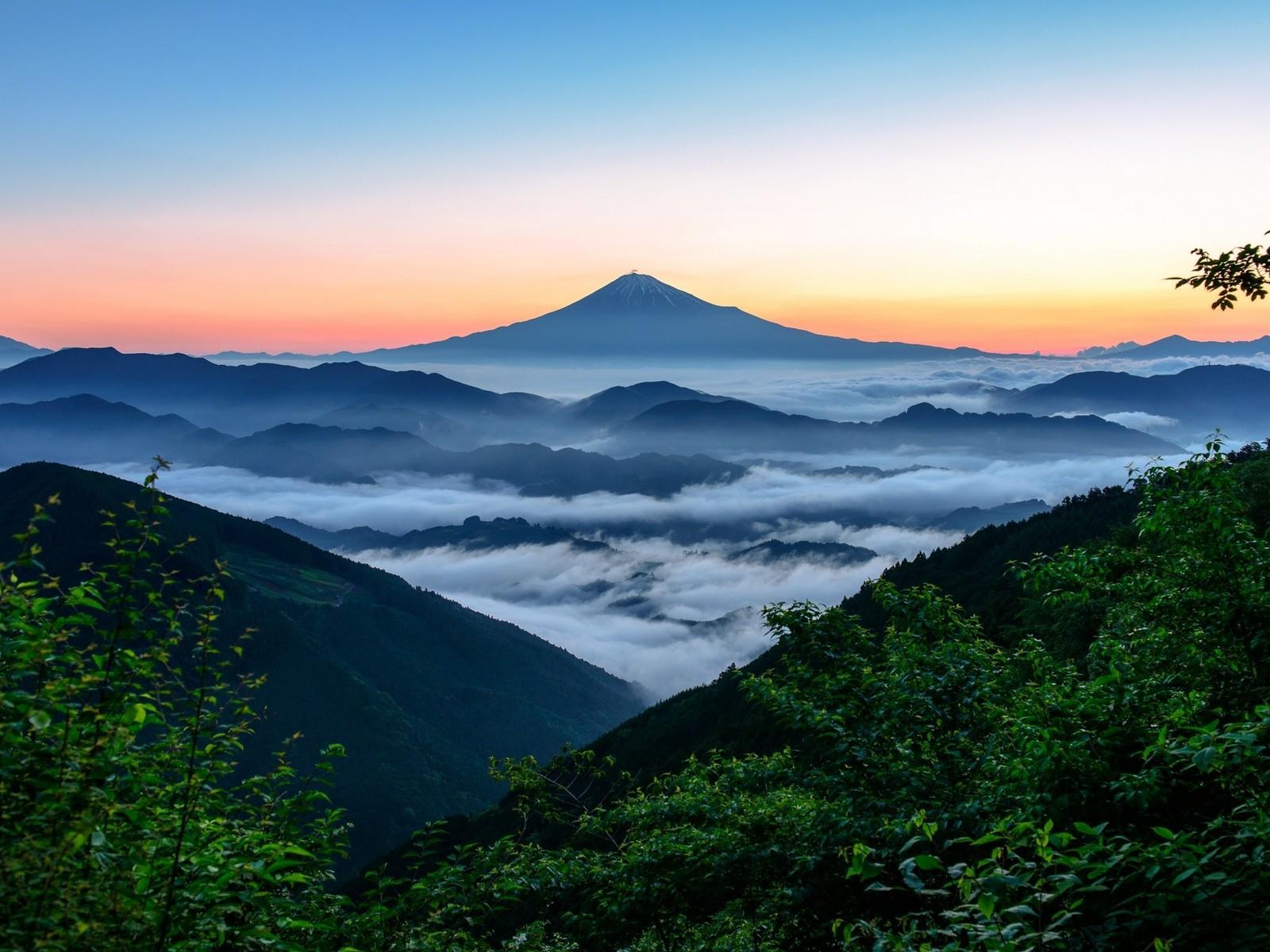 Wallpaper Mount Fuji in fog, Japan