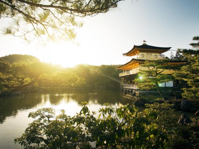 Wallpaper The pond at dawn, Japan