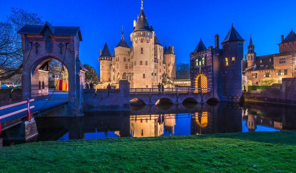 Wallpaper Ancient castle De Haar in the evening, Netherlands