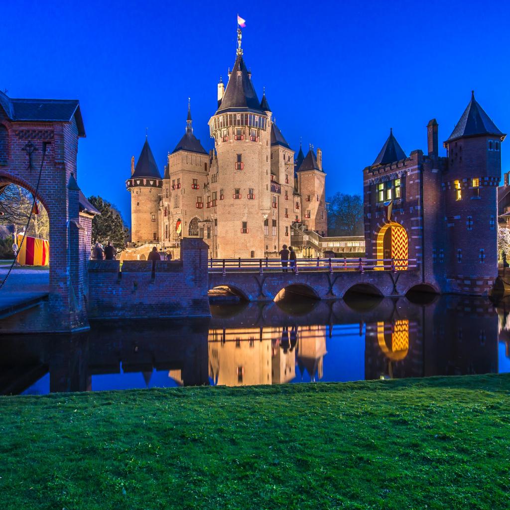 Wallpaper Ancient castle De Haar in the evening, Netherlands