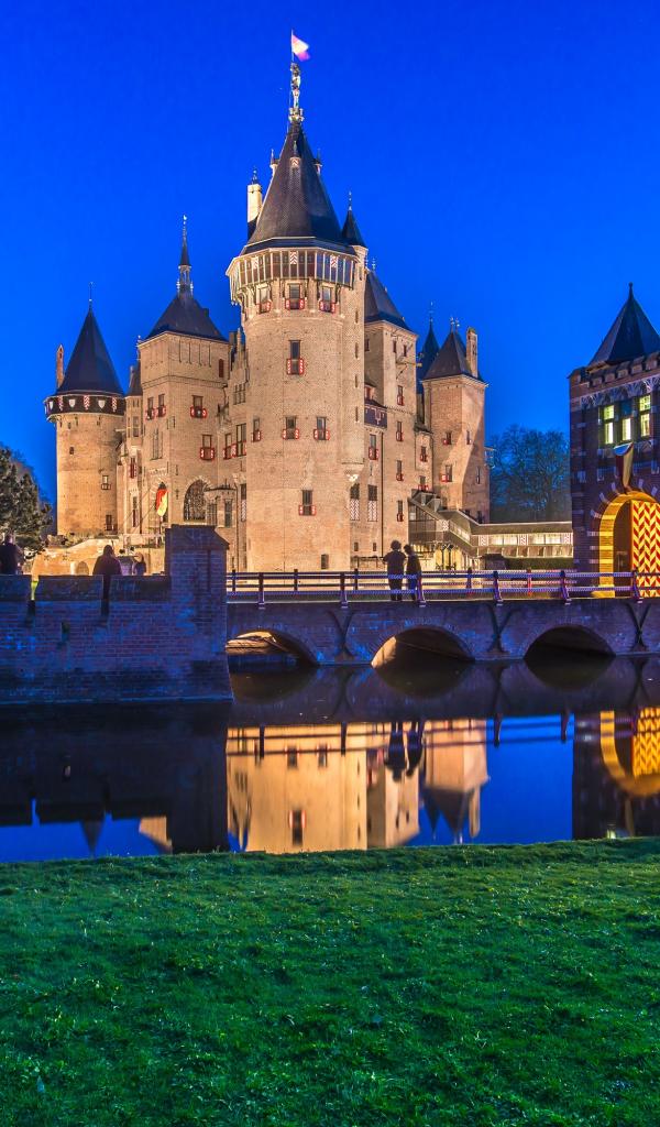 Wallpaper Ancient castle De Haar in the evening, Netherlands