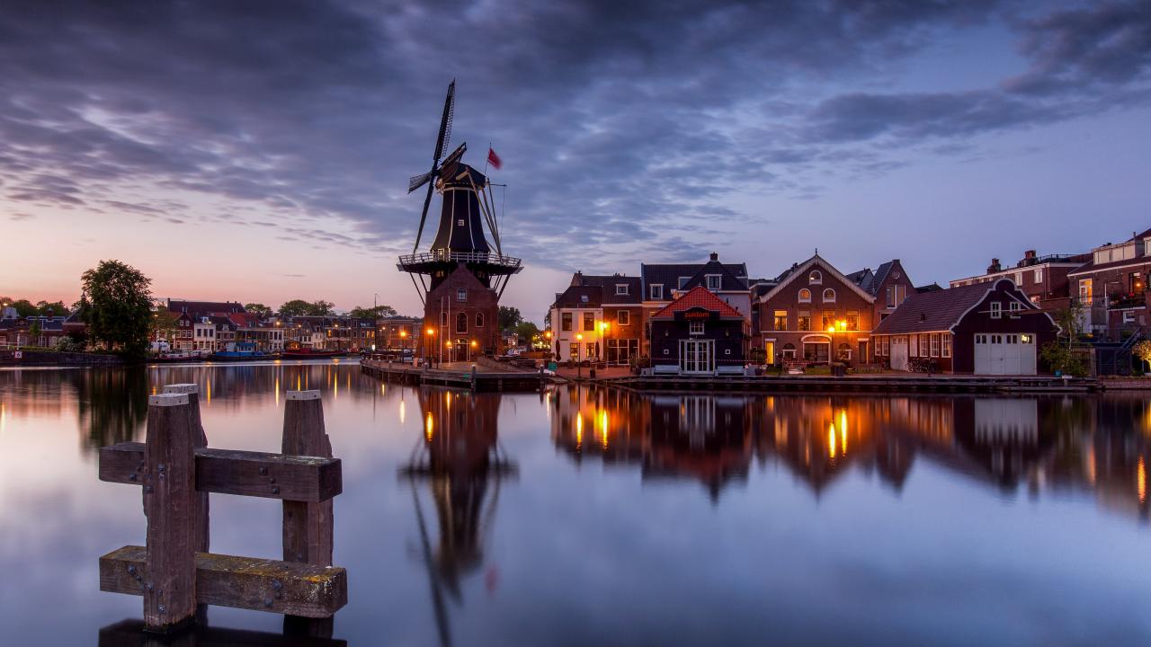 Wallpaper Beautiful evening city view by the river, Netherlands