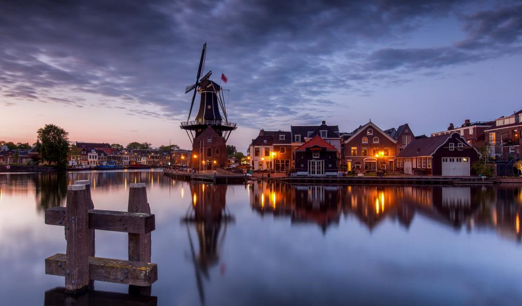 Wallpaper Beautiful evening city view by the river, Netherlands